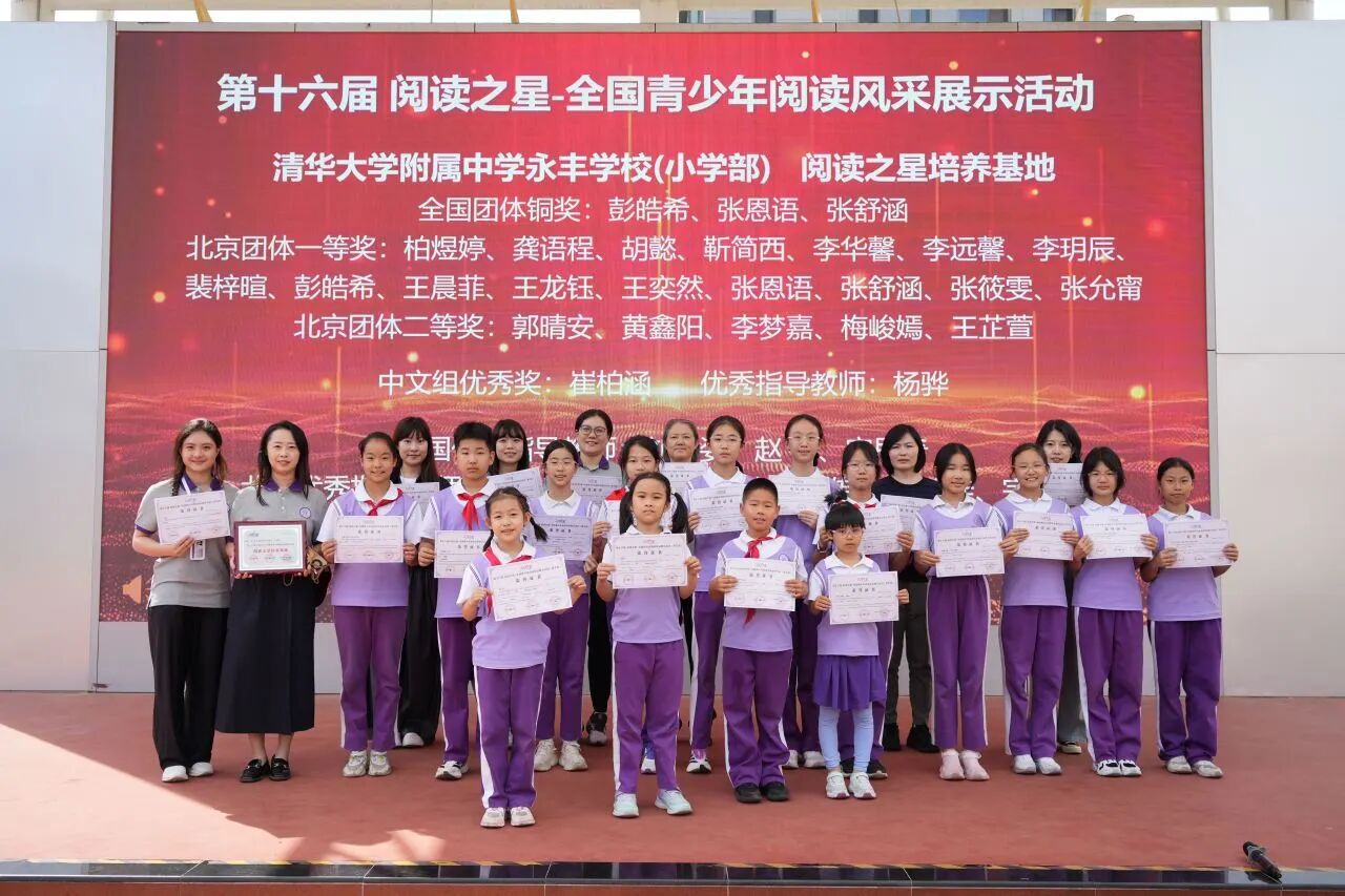 查看在“第十六届阅读之星英语展示活动”中,清华附中永丰学校张舒涵、刘定远、彭皓希、谢小溪、赵沐言五位学生凭借扎实的阅读积累和出色的英语口语展示能力,荣获“阅读之星”全国级奖项;李一墨等38名学生获得北京市级奖项;彭皓希等24名学生获得团体奖。英